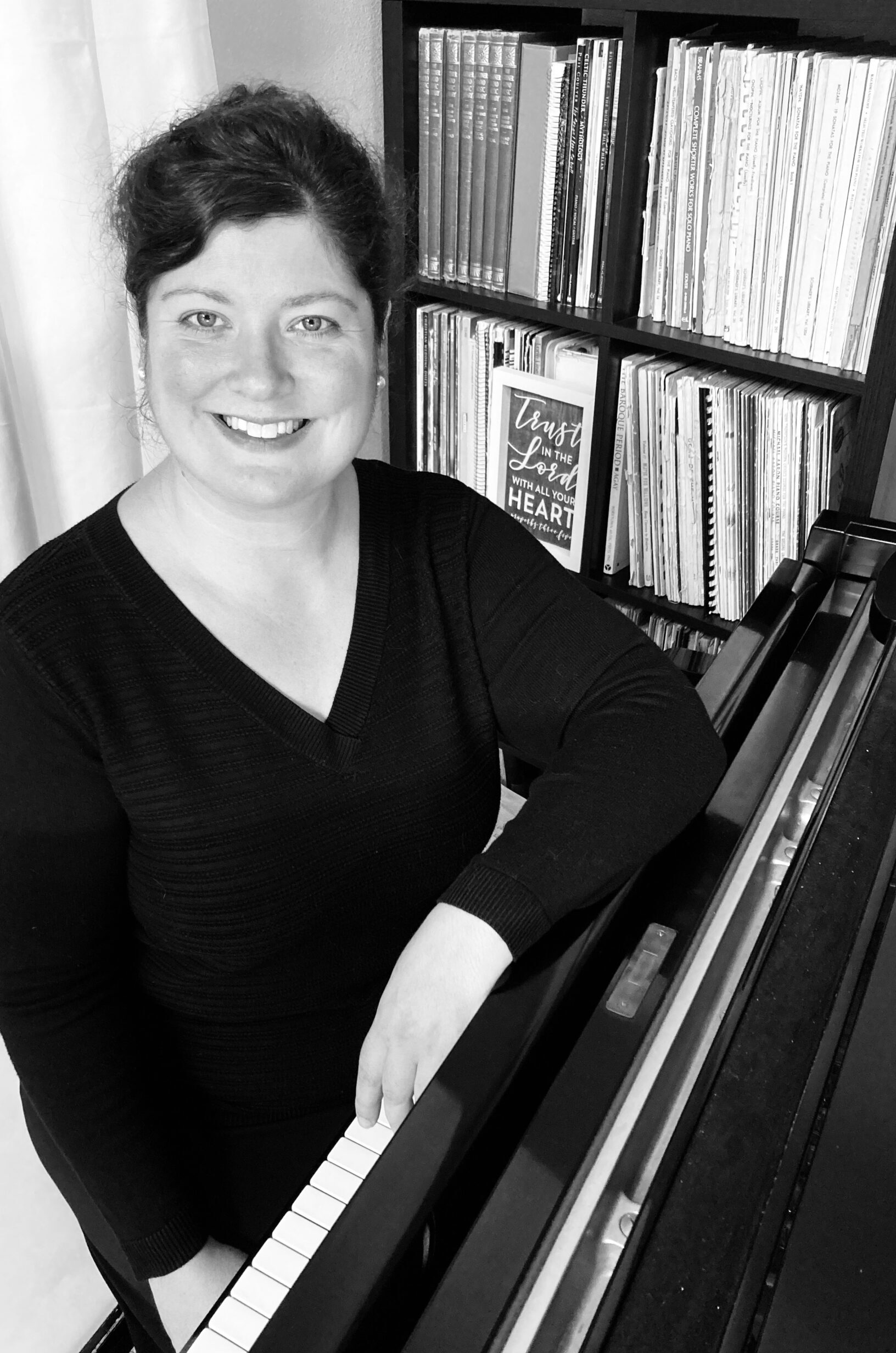 Katie loves worshiping the Lord every Sunday (from the piano bench). She also enjoys hiking, reading old books, and traveling, especially to Ireland.